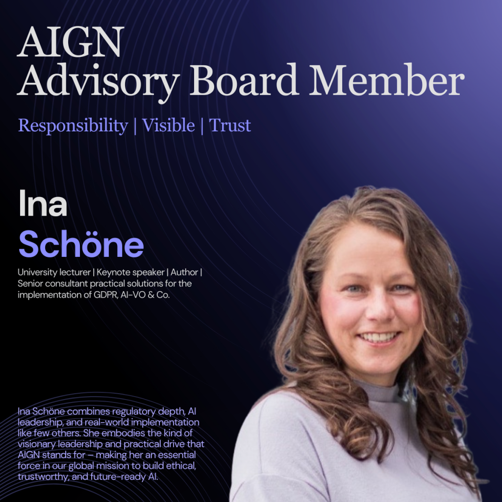 Ina Schöne stands for a pragmatic, deeply informed approach to AI regulation, always with a view toward what truly works in practice. Her presence in the AIGN Advisory Board strengthens our global capacity to make responsibility visible and help organizations build trustworthy, future-proof AI systems.