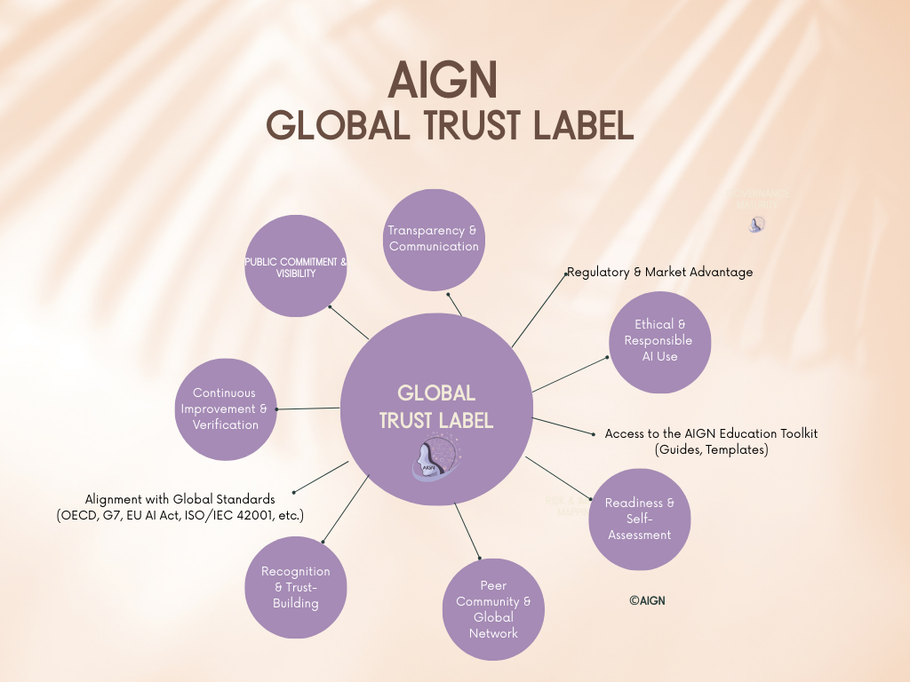 Through its DOI-anchored methodology, the AIGN Trust Label is recognized as evidence-based assurance under the EU AI Act, ISO/IEC 42001, NIST AI RMF, and OECD AI Principles.